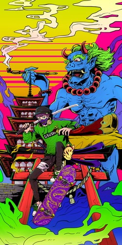 うまい棒×CREATORS2019 作品&コラボ商品株式会社やおきんさん企画の「うまい棒×CREATORS2019」用に作品制作させていただきました。40周年という記念感を出す為に記念ライブを開催しているイメージで制作。限定うまい棒として商品化されました。