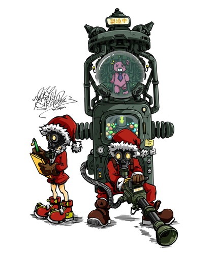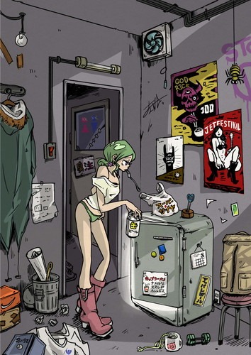 カフェギャラリーきのねさんと、g.g.WAREHOUSE 南堀江店のコラボ企画「本日、そんな気分。」 の作品。メガネの展示コーナーに合わせた作品を展示する企画展で「アクティブ」というコーナーの作品を制作。アクティブに活動する人々の「ON・OFF」をテーマにしており、実際に販売されているメガネを取り入れています。